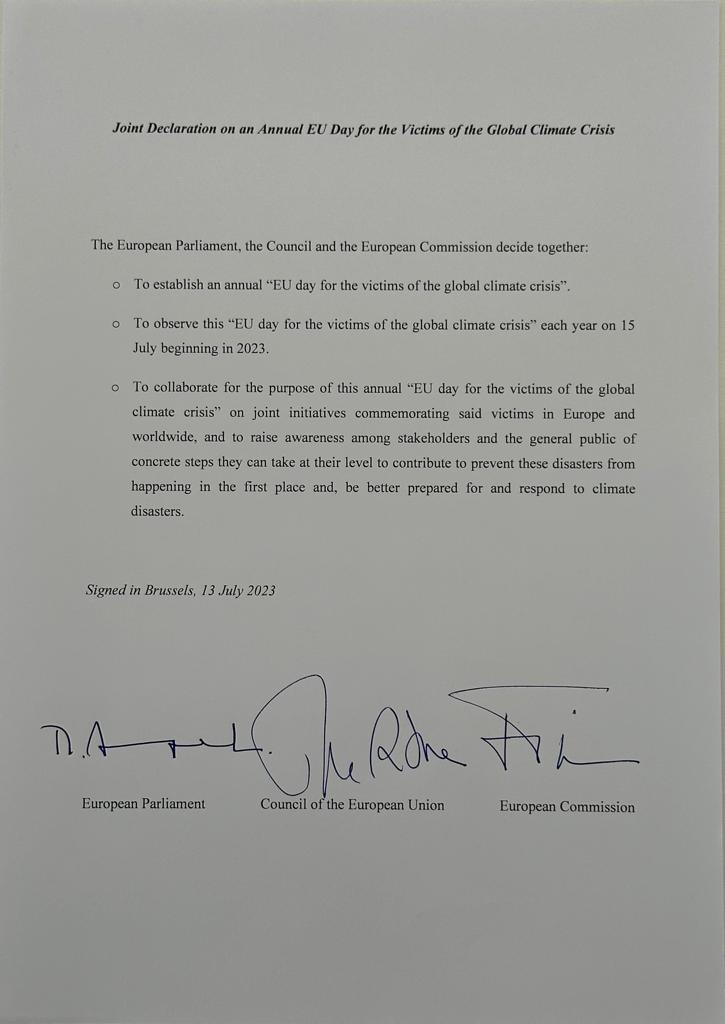 A menger Funktioun als Vizepresident vum Europaparlament hunn ech haut d’Deklaratioun fir d’Aféiere vun engem Gedenkdag fir Klimaopfer ënnerschriwwen. Ab haut, gëtt all Joers um 15. Juli un d’Klimaopfer an Europa an doriwwer eraus geduecht. Mat dësem Gedenkdag soll och d’Bewosstsi vun de Biergerinnen a Bierger geschäerft ginn. All Mënsch kann e Bäitrag leeschte fir dem Klimawandel entgéintzewierken.
